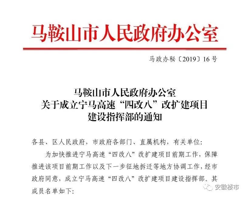 根据日前马鞍山市印发的《2019宁马重点合作项目》,宁马高速公路改扩建项目将在2019年四季度开工!