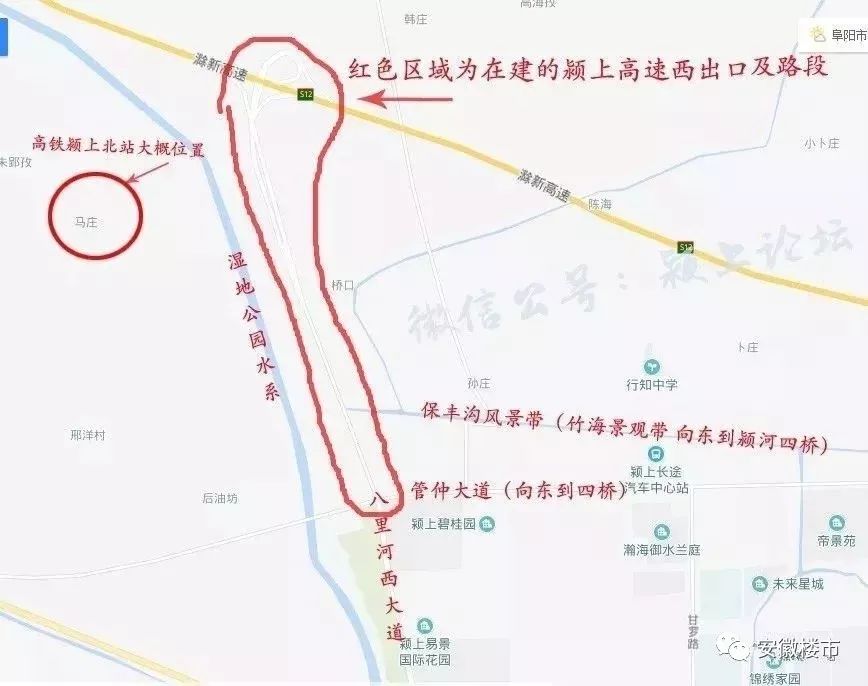 滁新高速颍上西出口将于今年7月份开通。到时候阜阳、颍上两地的高速公路距离将缩短10公里,节省时间20分钟以上。另外,该处的高速公路连接线将与颍上县S102、西大道交叉处衔接,可直达八里河风景区。