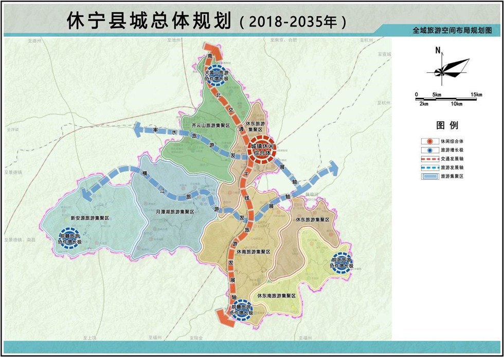 3、两轴:齐(云山)休(宁)屯(溪)城镇发展轴;黄(山风景区)休(宁)婺(源)城镇发展轴。