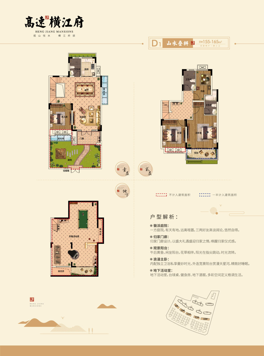 山水叠拼D1户型建筑面积155-165㎡-4室2厅3卫-155.0㎡