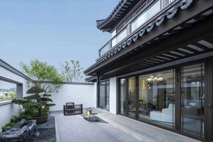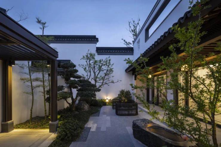 本次开放的实景示范区,正是第一进“车马院”,是未来浣云家人的“落客区”,将中式的雅趣、礼序与现代生活的艺术相结合,高大名贵的树木植于车马院四角,独具一格的奇峰怪石也“孤峰依云”般横陈于浣云门前,犹如古人府前下马,重现传统名门世家尊崇归家的仪式感。从「车马院」往里走,是曲径通幽的邻里巷道,串联起一幢幢中式建筑,这种有机的方式也让浣云的生活富于变化和活力,每一个巷道转弯,总能邂逅不一样的惊喜。