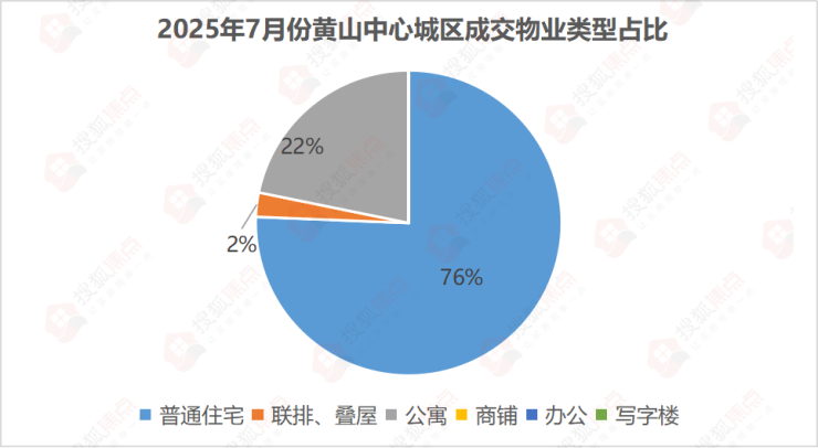 2025年7月,黄山中心城区新房成交78套,环比6月的82套,下降4.88% ,同比去年的72套,上涨8.33%。其中普通住宅成交59套,占比76%,成交均价10230元/㎡,较6月的10400元/㎡小幅下调,反映出开发商在淡季加大“以价换量”策略,促销也进入了淡季模式。