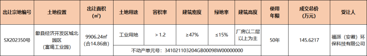 歙县1宗工业用地成交