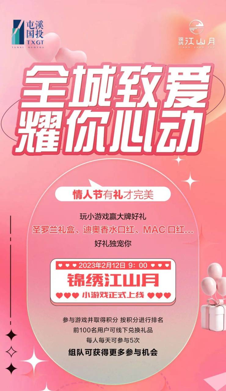 情人节送福利啦!大牌好礼致爱全城耀你心动!锦绣江山月小游戏即将上线!