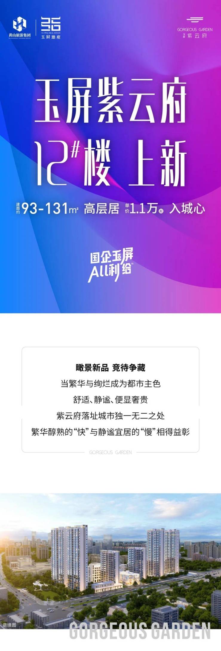 玉屏紫云府12#楼上新,建面约93-131㎡高层居,单价1.1万起,入城心!…