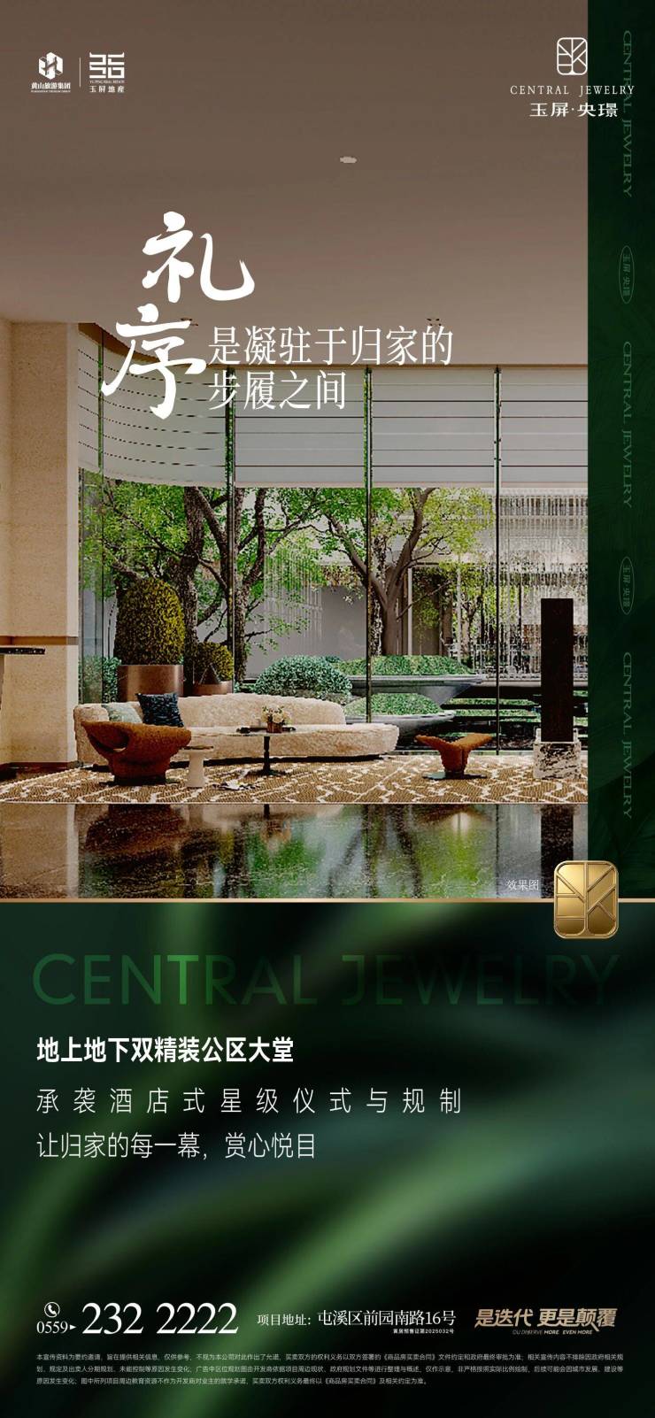 归家,是生活的重要仪式,亦是身份与心境的归位。玉屏·央璟深谙高端人居的核心诉求,将尊崇仪式感融入归家全动线,以四重匠心配置,为居者铺就一条从车行归家到社区漫步的优雅之路,重新定义黄山塔尖生活的日常标准。