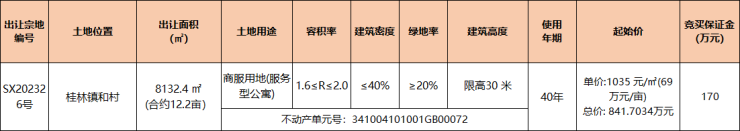 歙县1宗商服用地挂牌,总出让面积约12.2亩
