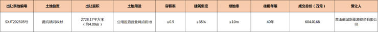 现将歙县SXJT202505号地块集体经营性建设用地使用权挂牌出让成交结果公示如下: