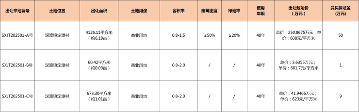经歙县人民政府批准,歙县深渡镇定潭村股份经济合作社委托黄山市公共资源交易中心歙县分中心以挂牌方式出让以下3宗土地的农村集体经营性建设用地使用权。现将有关事项公告如下: