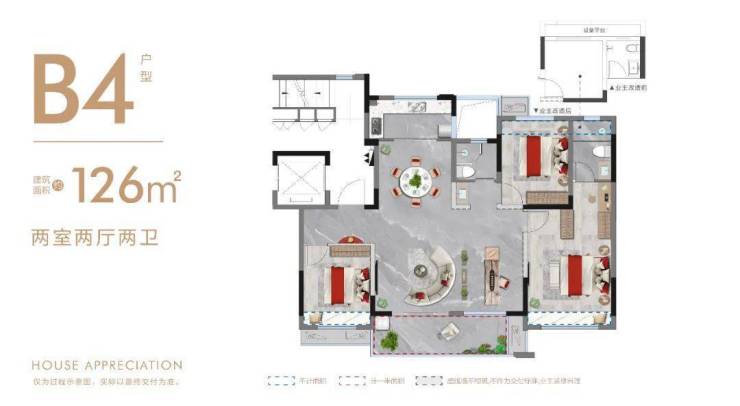 B4户型:13米南向三开间灵动大横厅,独立入户,餐厨分区。