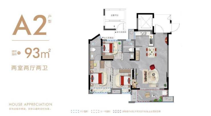 A2户型:约5米宽幕大横厅,多功能灵动空间,动静皆宜,张弛有度。