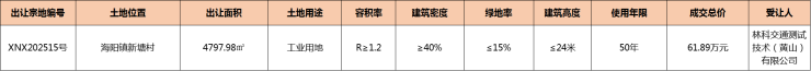 休宁县海阳镇1宗工业用地成功出让