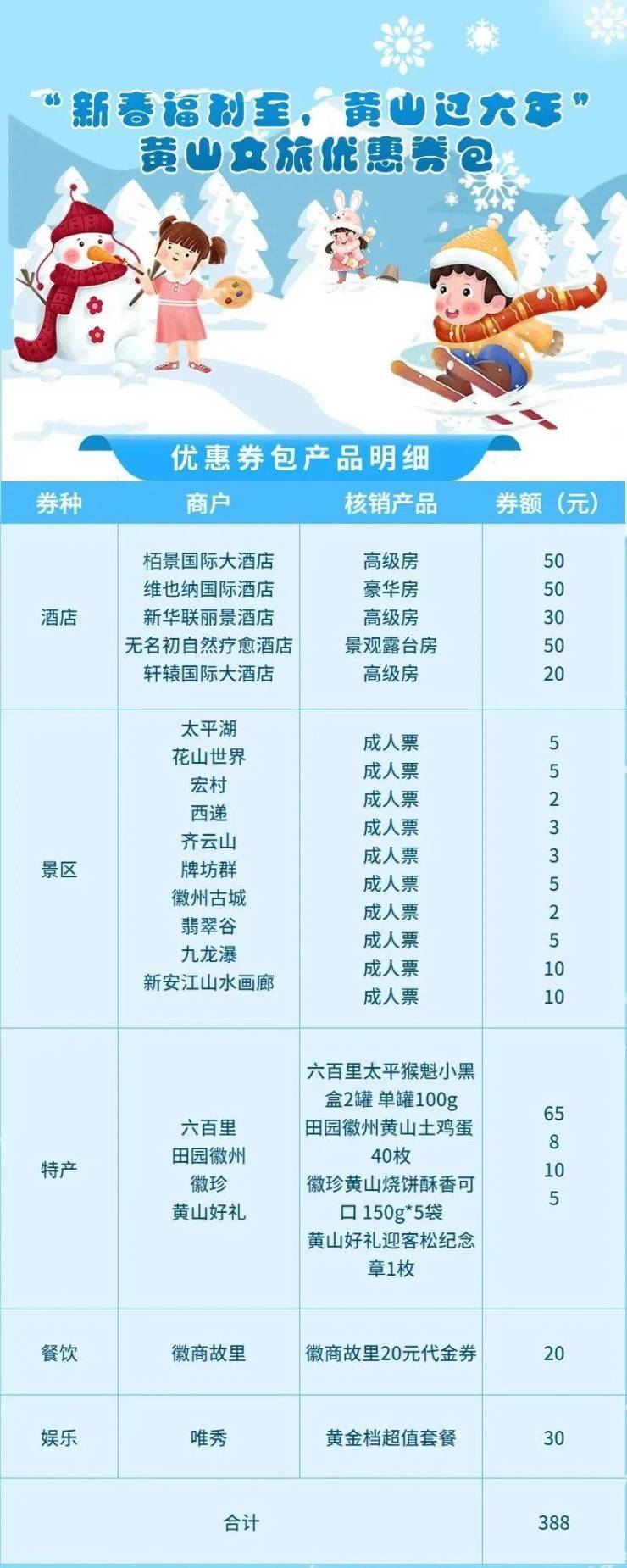 参与方式:至少提前一天在黄山旅游官方平台小程序预约活动免票消费券。