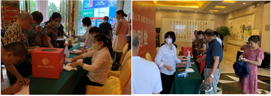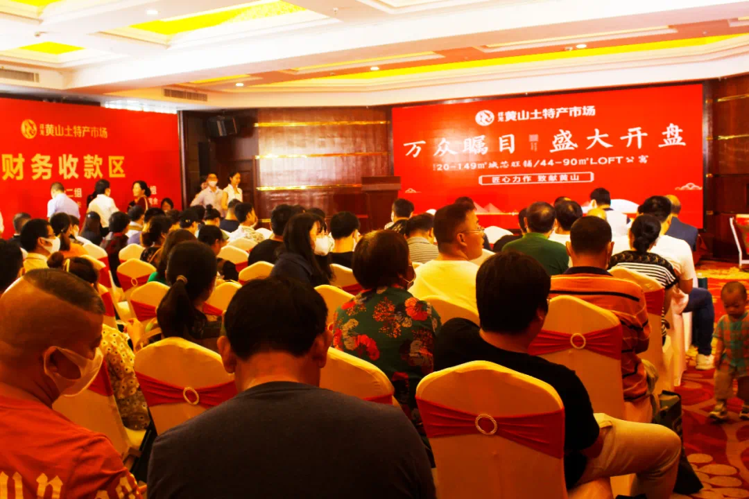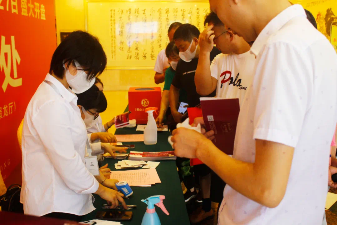 上午8:30,炎炎夏日也丝毫未影响大家满腔的热情,一大早,黄山饭店开盘现场的签到区就已经汇集了众多意向商家和投资老板,大家依次有序进入酒店一楼签到登记,酒店活动现场人群攒动,场面热火朝天!