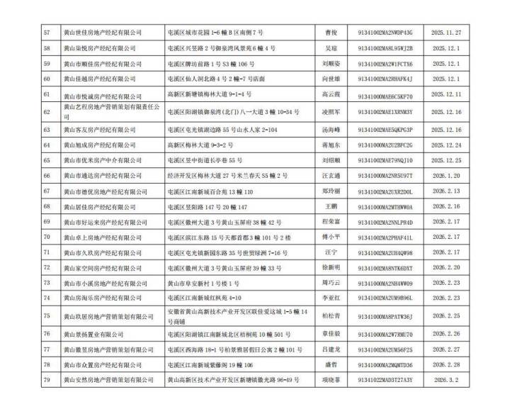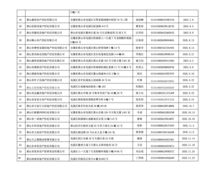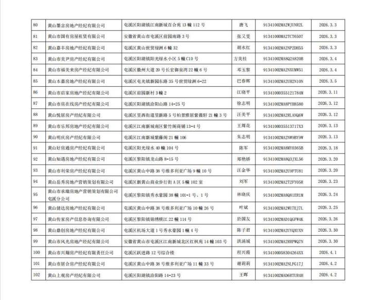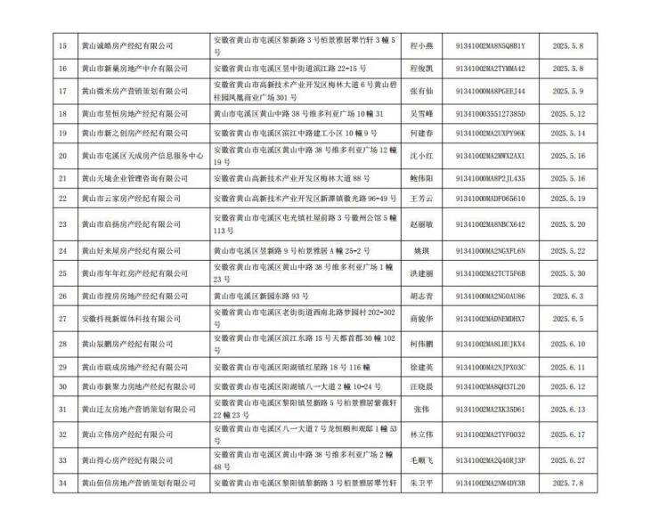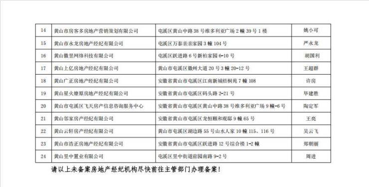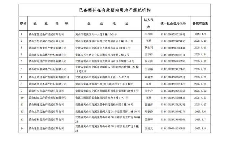 黄山市中心城区房地产经纪机构备案情况公示