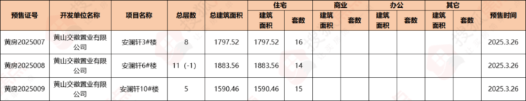 2025年3月,黄山中心城区安澜轩1盘获预售证,新增可预售住宅房源45套。