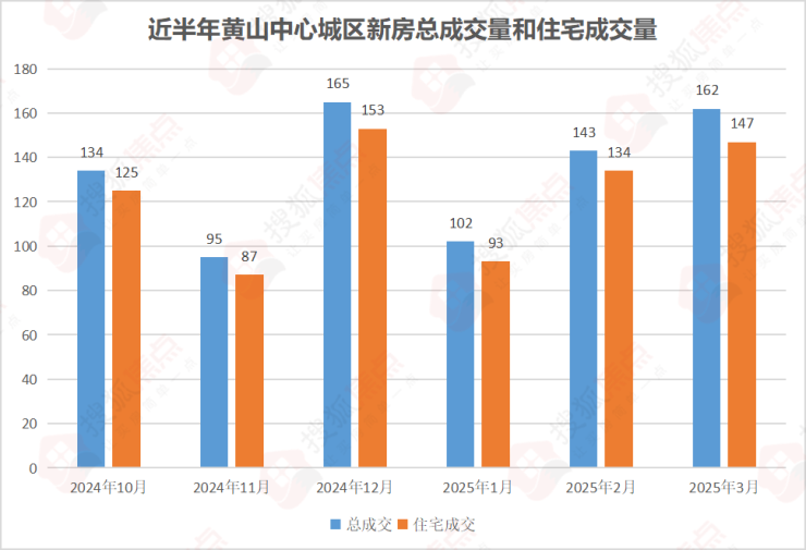 2025年3月黄山中心城区新房共成交162套,环比2月的143套,增加19套,上涨13.29%;同比去年3月的84套,增加78套,上涨92.86%。