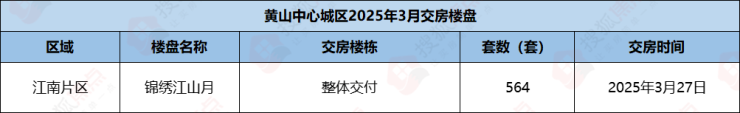 2025年3月,黄山中心城区锦绣江山月1盘整体交付,共计564套住宅房源。