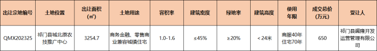 祁门县1宗商务金融、零售商业兼住宅用地成交
