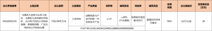 黄山中心城区1宗工业用地挂牌出让