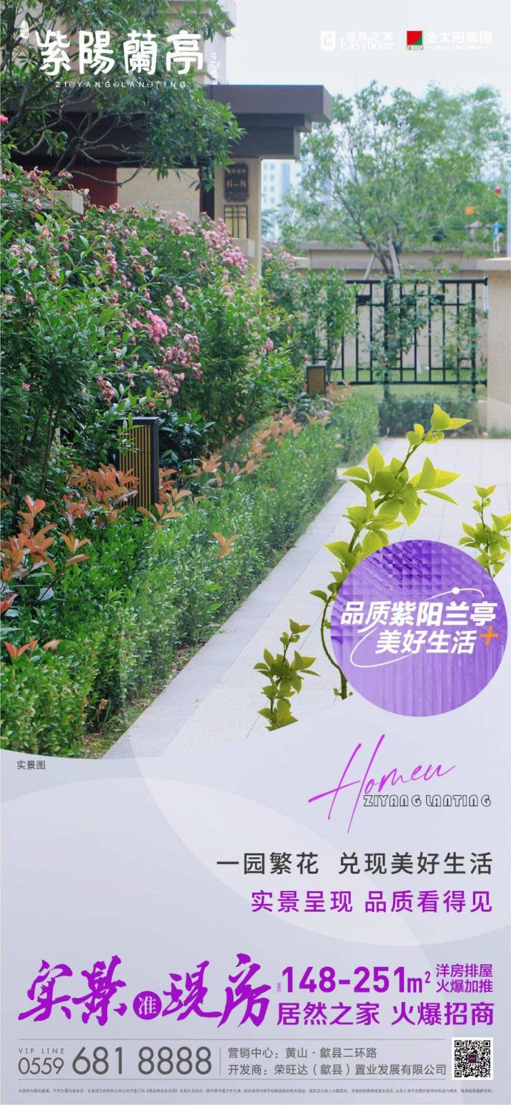 紫阳兰亭,洋房排屋,实景准现房,一园繁花,兑现美好生活,火爆加推,建面约148-251㎡。