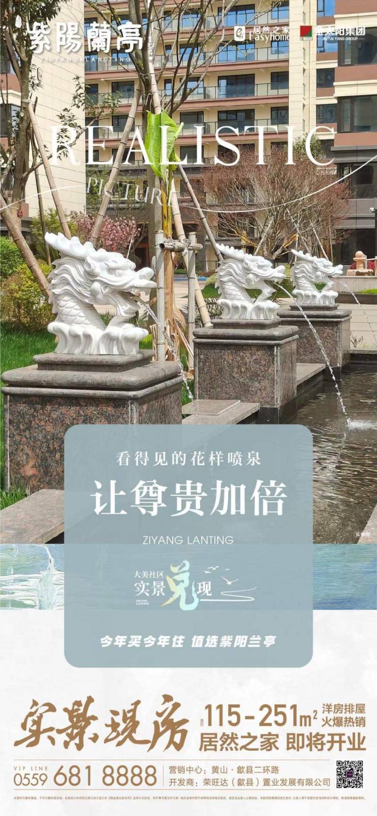 紫阳兰亭,惬意生活样板,看得见的花样喷泉,让尊贵加倍。大美社区,实景现房,今年买今年住,值选紫阳兰亭。建面约115-251㎡洋房排屋火爆热销中,居然之家,即将开业。