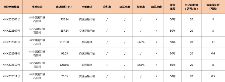 休宁县溪口镇6宗土地集中出让!交通运输用地4宗、公园绿地2宗