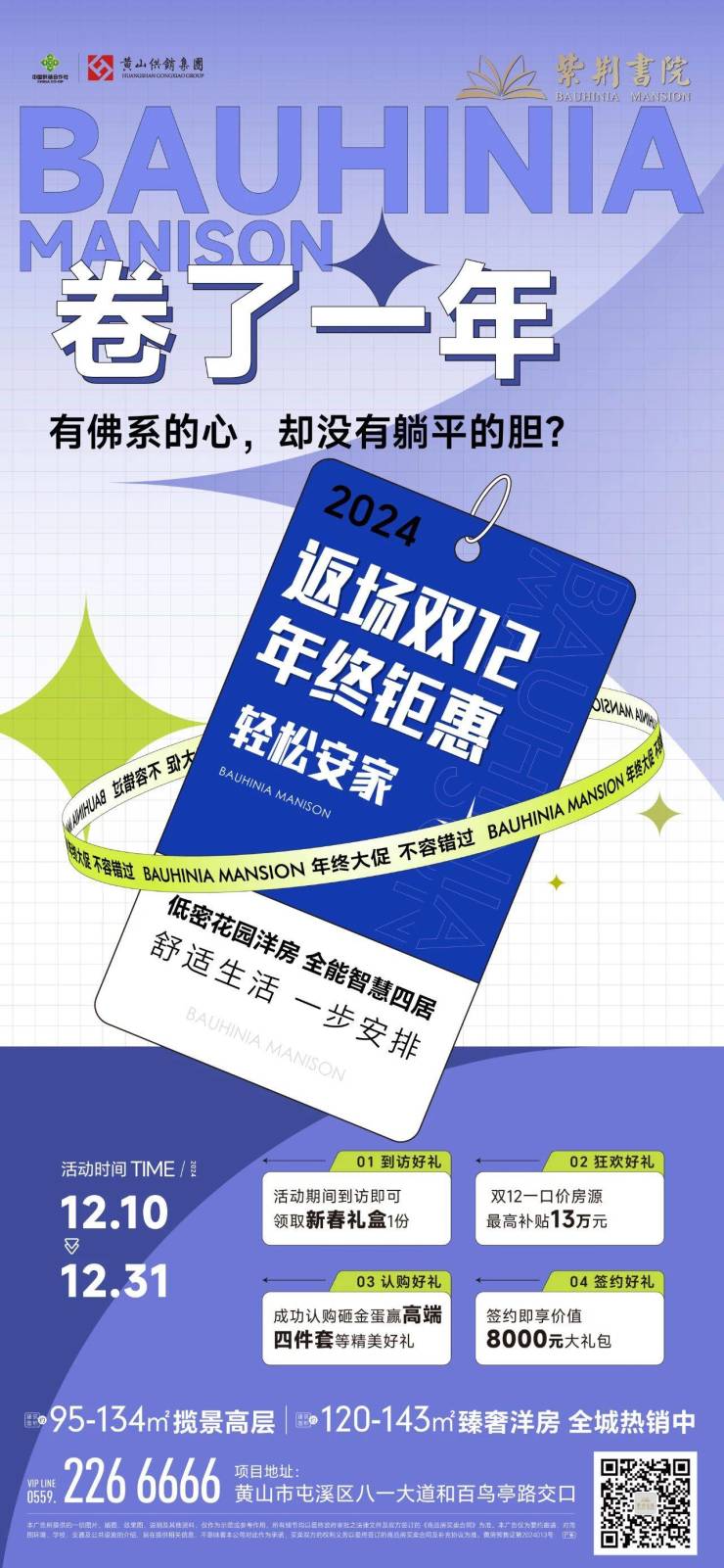 卷了一年,有佛系的心,却没有躺平的胆?紫荆书院,低密花园洋房,全能智慧四居,舒适生活一步到位。返场双12,年终钜惠,四大好礼,轻松安家。活动时间:截止至12月31日。