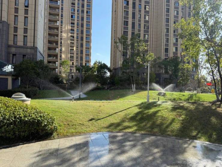 均匀灌溉,告别“旱涝不均”。传统人工浇水难以避免“这边浇透、那边半干”的浇灌窘境。全新的自动喷淋系统通过科学规划喷头位置与喷洒角度,实现了对草坪区域的精准覆盖。系统依托合理布设的管道与水压调控,使水珠均匀洒落,确保每一片草皮都能获得充分而适宜的水分滋养。这一灌溉方式不仅显著提升草坪生长的均匀性与健康度,也从根源上减少了水资源的浪费。