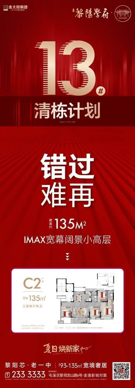 热销清栋 错过难再。黎阳学府13#楼清栋计划,建面约135㎡IMAX宽幕阔景小高层,四开间朝南,宽幕瞰景阳台设计,四季风景流转,南北通透,餐客阳台一体,清风穿堂而过,主卧套房设计,步入式衣帽间,独立卫浴,瞰景飘窗,私享尊崇生活。
