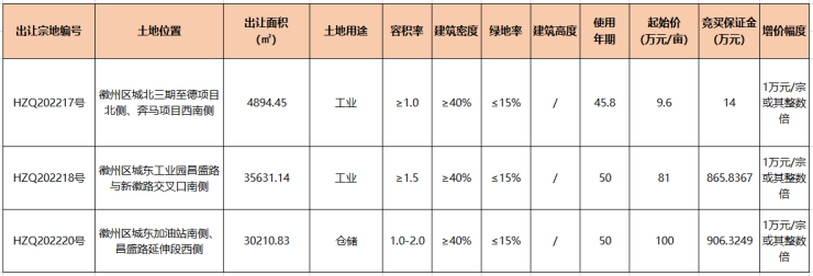 徽州区2宗工业工地、1宗仓储用地挂牌,出让面积总计106.11亩