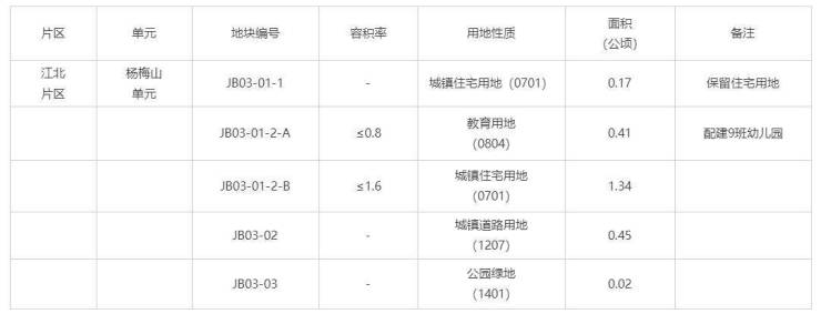 其中JB03-01-1地块为保留住宅用地,规划范围面积0.17公顷,规划在范围内配建停车位,增加绿化,以进一步提升居住环境和居住质量。
