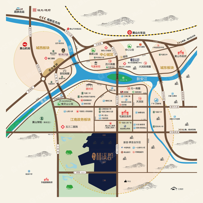 黄山恒大林溪郡,依托主城中轴新安大道延伸段,综合路网纵横交错,7路公交直通中心城区。距主城约三公里,近享元一商圈、百大商圈、大润发商圈繁华生活。项目自建酒店、沿街商业、会所、社区幼儿园,满足不同年龄人群的多样选择,让生活更便捷。
