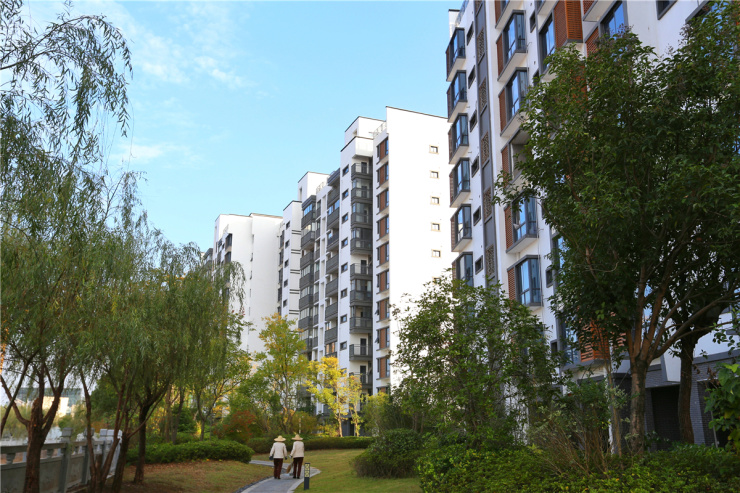 从项目北侧主出入口进入,两边就是迷你高尔夫球场。小区内将传统徽派园林曲径通幽的空间布局以及桥、台、榭等要素应用到现代生活场景,构筑五大主题景观。