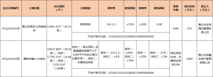 黄山区1宗旅馆用地、1宗商业用地成功出让
