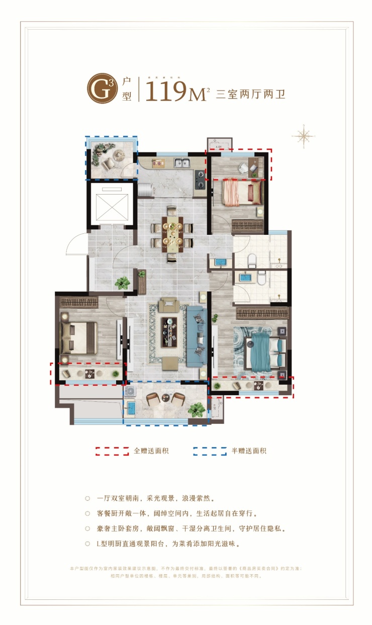 二期新品建筑面积约91-158㎡,户型方正,户户全明设计,更多赠送空间,超大面宽阳台,朗阔视野,舒适而居。