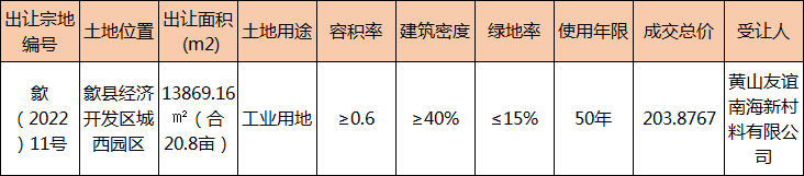 歙县经开区1宗工业用地成功出让,合计20.8亩