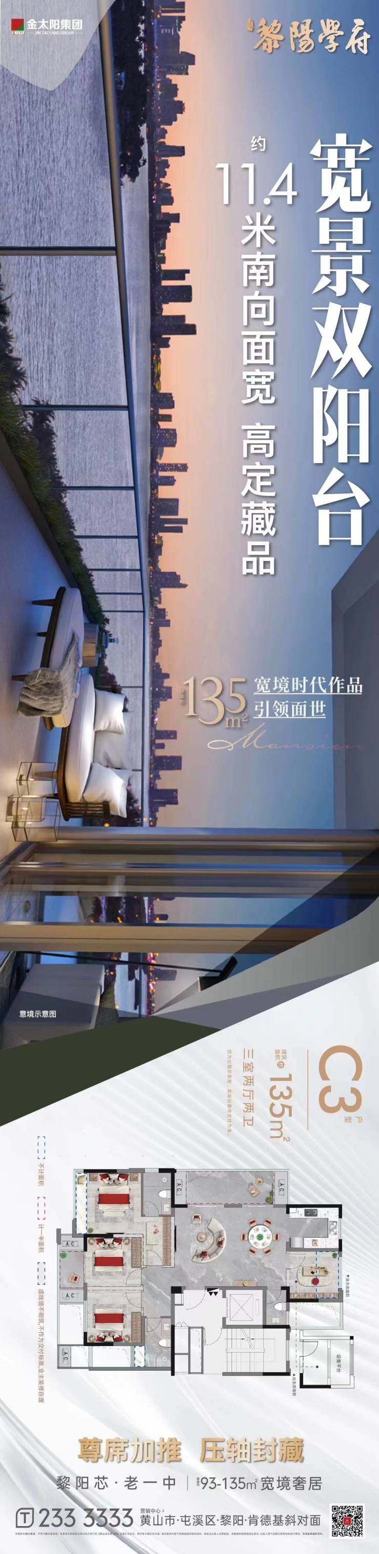 黎阳学府压轴封藏建面约135㎡户型,三室两厅两卫,宽境时代作品,引领面世,约11.4米南向面宽、宽景双阳台,高定藏品。黎阳学府,黎阳芯·老一中,建面约93-135㎡宽境奢居热销中,压轴封藏,尊席加推,谁能入主…