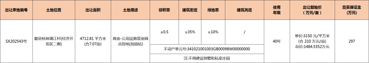 经歙县人民政府批准,歙县自然资源和规划局委托黄山市公共资源交易中心以挂牌方式出让以下 1宗土地的国有建设用地使用权。现将有关事项公告如下: