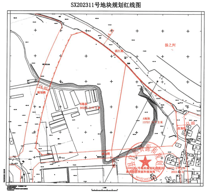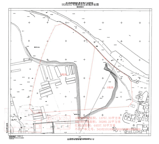 SX202311号商住用地,总面积 44037.55㎡(合约66.06亩),要求住宅部分全装修建筑面积不低于100%。其中:A地块商服地块,面积13757.33㎡,容积率1.0≤R≤1.2;B地块住宅地块,面积30280.22㎡,容积率1.2≤R≤1.8;起拍总价10569.0120万元,起拍单价2400元/㎡(160万元/亩),拍卖时间:2023年6月21日15时30分。