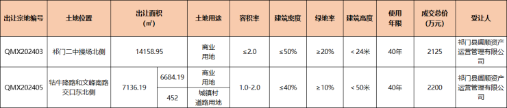 根据《招标拍卖挂牌出让国有建设用地使用权规定》(国土资源部令第39号),现将祁门县国有建设用地使用权挂牌出让成交结果公示如下: