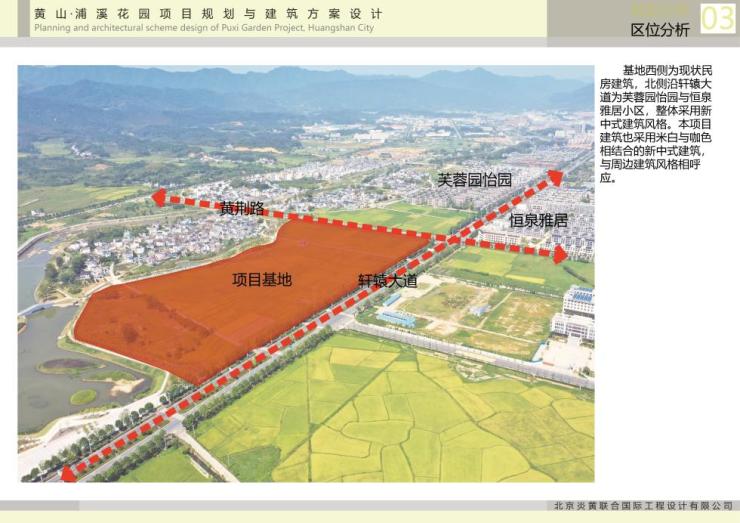 黄山·浦溪花园项目位于甘棠镇轩辕大道与黄荆路交叉口,北侧地块总用地面积为83374.94平方米(约125.06亩),主要功能住宅及配套用房。北侧地块项目总建筑面积166316.67平方米,计容建筑面积129182.06平方米,容积率1.55,建筑密度20.18%,绿地率32.20%。南侧地块总用地面积为49686.09平方米(约74.53亩),主要功能博物馆、艺术展览馆、商业及附属用房。南侧地块项目总建筑面积40238.51平方米,计容建筑面积29762.53平方米,容积率0.60,建筑密度28.16%,绿地率30.16%。