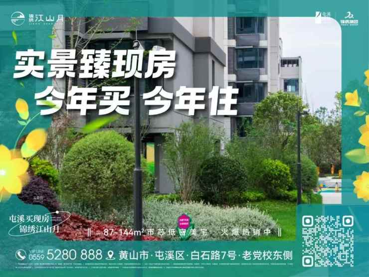 屯溪买现房,锦绣江山月。建面约87-144㎡市芯低密美宅热售中,均价12500元/㎡。