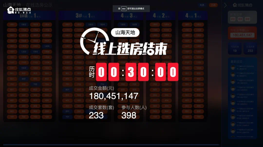 开盘当天,首创黄山线上选房,30分钟线上热销房源233套,去化9成以上。据黄山搜狐焦点房产网数据统计,山海天地单次开盘成交量,位居2020上半年高新区单个楼盘成交总量排名前列名,创造了空前的销售佳绩,火爆全城。
