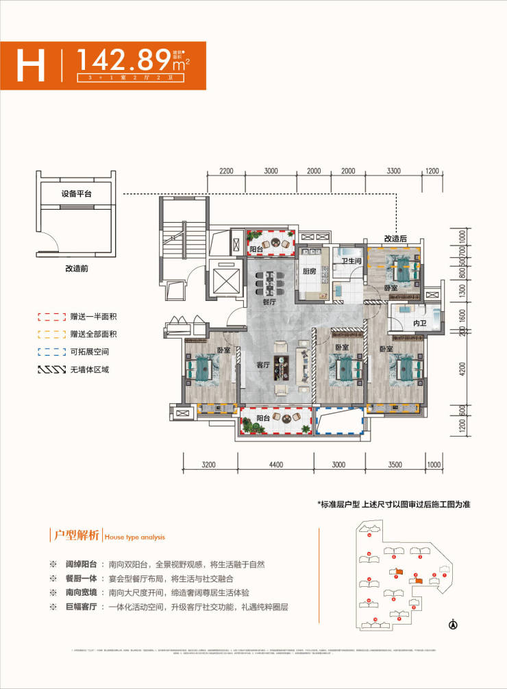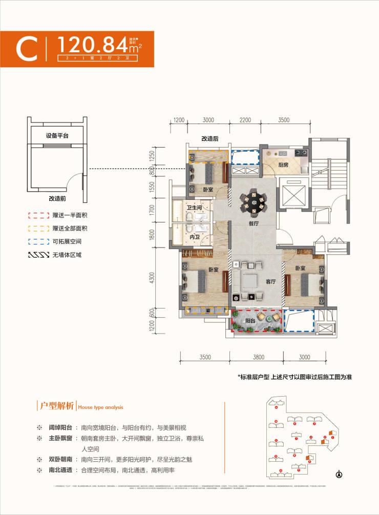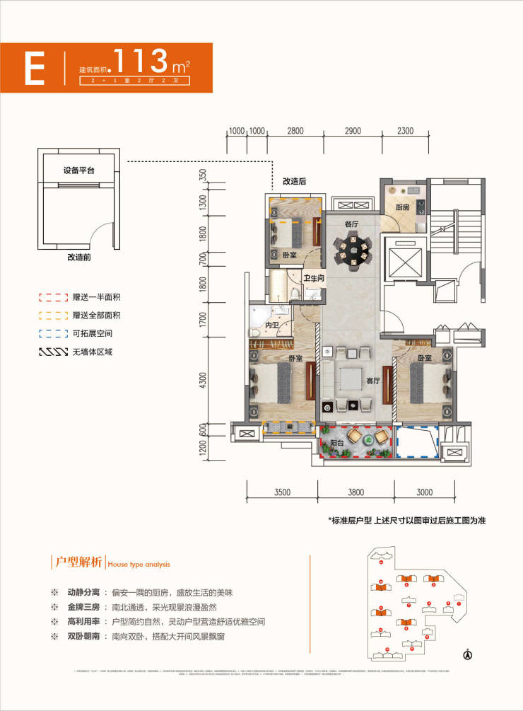 锦绣江山月容积率仅为1.8,是市芯难得的临江低密住区,项目共建有14栋住宅,采用的是“叠墅+小高层”产品规划,总户数564户,总建筑面积约9万余方,楼与楼之间错开排列,楼间距开阔,充分保证了每栋楼、每一户都能享受到极致的采光和视野;户型建面约87-144㎡,多样化户型打造,且均是市场上经典热销款的迭代升级版本,用精细化的尺度来划分不同客户的需求;户型整体设计上,采用大面宽、短进深的设计,南向三开间起步,超大采光面,高拓展空间。