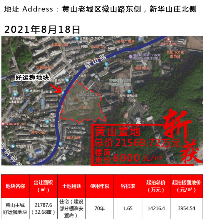 “想在黄山城区买套好房子真难”,大概是黄山大部分购房者内心真实的一句独白。回顾十几日之前的土拍现场,黄山市中心城区首场土拍在这里重磅开槌。在经历了三家房企竞抢,220轮鏖战之后,好运狮地块最终由某开发商收入囊中。经预估,该地块商品房的售价可能在14000元/㎡左右。(该数据来自搜狐焦点黄山站)