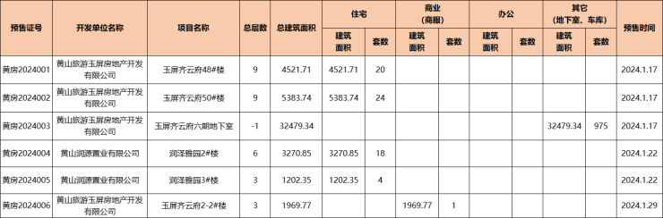 1月黄山中心城区2盘获预售证,新增可预售住宅房源66套