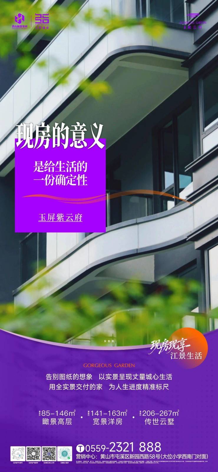 现房现享,江景生活,玉屏紫云府建面约85-146㎡瞰景高层、141-163㎡宽景洋房、206-267㎡传世云墅现房臻席递减中。