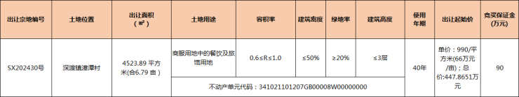 歙县1宗商服用地挂牌,总出让面积约6.79亩