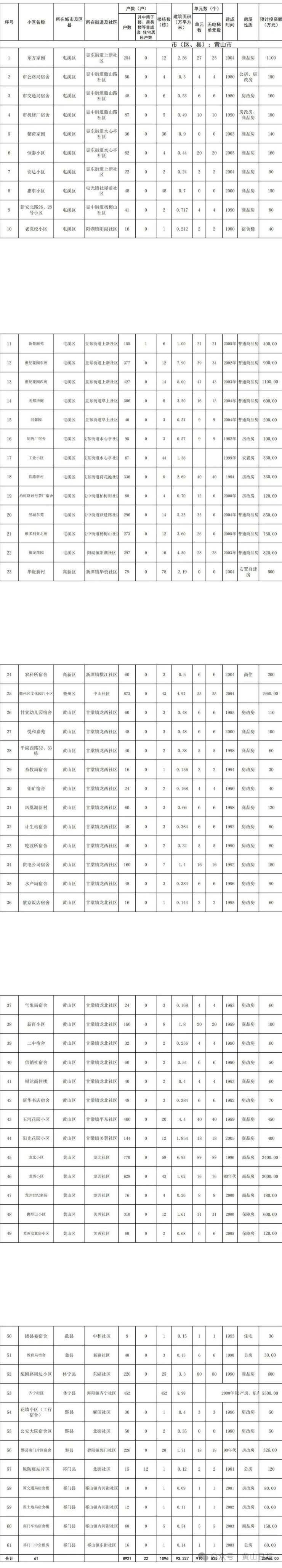 黄山市今年计划改造61个城镇老旧小区!